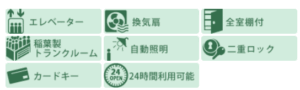 2. セキュリティ: 防犯カメラ、専用鍵、スタッフ常駐などの安全対策。